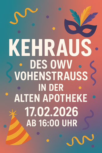 Dienstag, 17.02.2026 ab 16:00 Uhr: Kehraus im Vereinsheim "Alte Apotheke"
